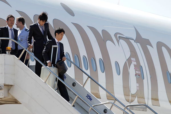 Los japoneses llegaron procedentes de Doha y no hicieron ninguna declaración al ingresar al hotel en que se alojarán en la capital brasileña, donde fueron recibidos por una pequeña banda que entonó algunas de las más conocidas sambas y marchas de carnaval.??