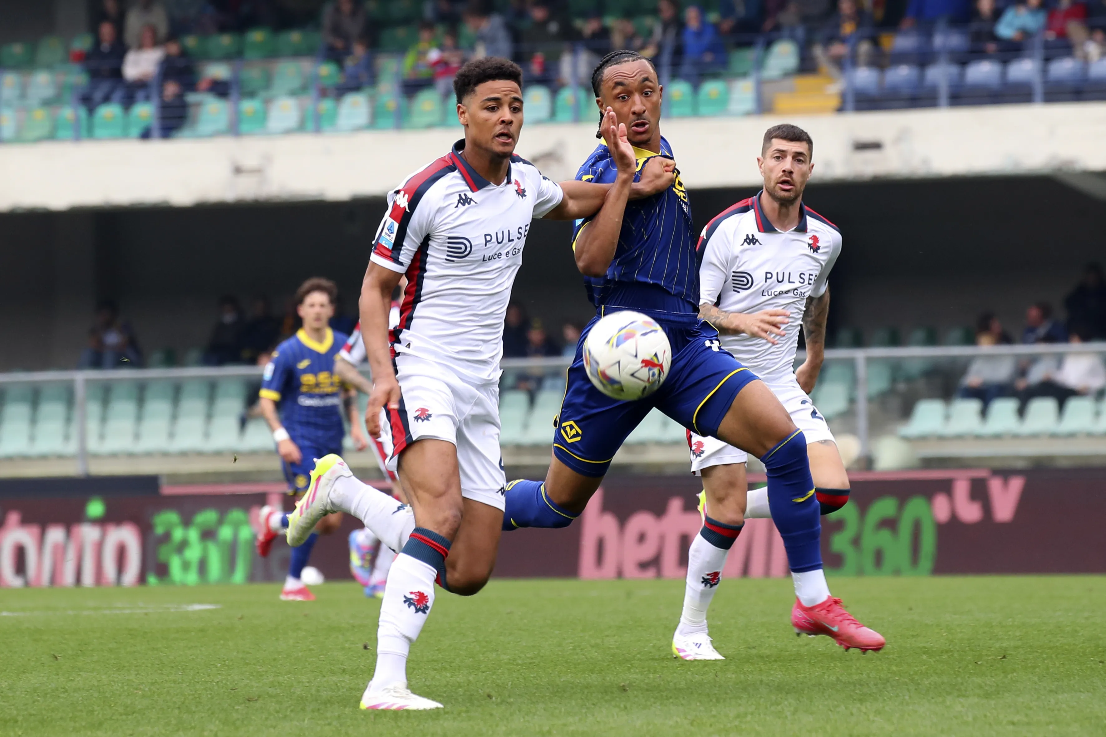 La primera de peligro en el partido llegó hasta el minuto 35, cuando Mosquera, delantero del Hellas Verona disputó y ganó un balón en los linderos del área del Genoa y con un potente disparo cruzado estuvo cerca de abrir el marcador, pero Leali estiró la pierna y le quitó el gol a los locales.