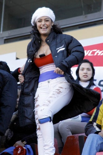 La exuberante modelo se convirtió en el centro de todas las miradas en las gradas del Estadio Brigadier Estanislao López.