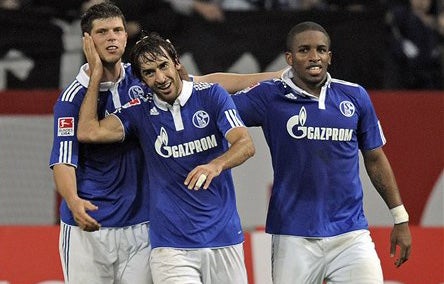 Atsuto Uchida preparó la primera diana a los 14 minutos con un centro raso que Huntelaar bombeó para Raúl hacia el palo contrario y el español sólo tocó el balón para anotar.