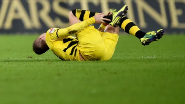 Marco Reus será baja durante aproximadamente tres meses debido a una rotura de ligamentos externos del tobillo derecho, tras una fuerte entrada de Marvin Bakalorz en el duelo de este sábado entre Borussia Dortmund y Paderborn en la jornada 12 de la Bundesliga.