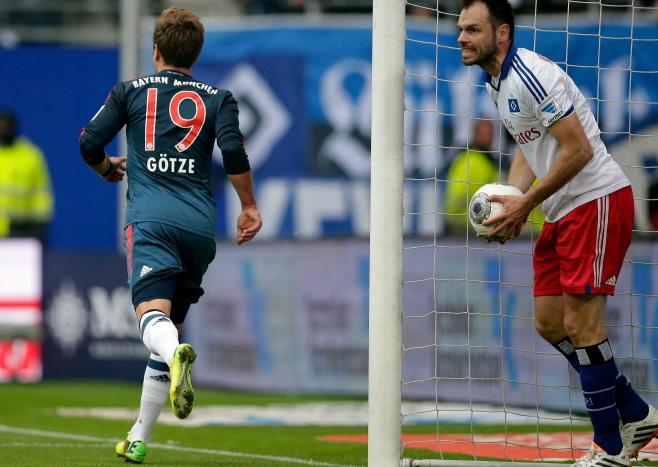Mario Götze, el gran olvidado en la Semifinal contra el Real Madrid, se convirtió en el protagonista de la goleada del Bayern Munich en Hamburgo (1-4), en la penúltima jornada de la Bundesliga que, conocidos los dos primeros clasificados, aún mantiene la pugna por las plazas europeas y el descenso.