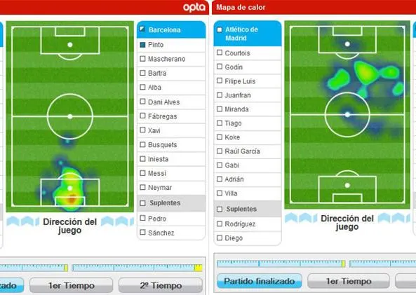 La estrella culé, Lionel Messi, lució apagado en el partido de Vuelta contra el Atleti, donde los blaugranas cayeron 1-0. El argentino participó en los 90 minutos de acción donde recorrió un total de 6.8 km, apenas 1.5 km más que el arquero de su equipo Manuel Pinto, que tuvo un desplazamiento de 5.3 km en el encuentro.