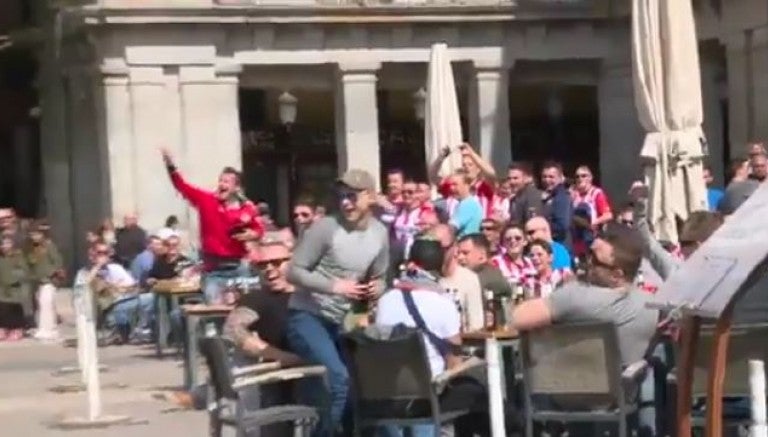 La Policía Española detuvo a seis hinchas del PSV Eindhoven tras el partido disputadocontra el Atlético de Madrid. Los aficionados causaron desórdenes públicos, daños en vehículos y agredieron a varios ciudadanos con los que se cruzaron en la Puerta del Sol.