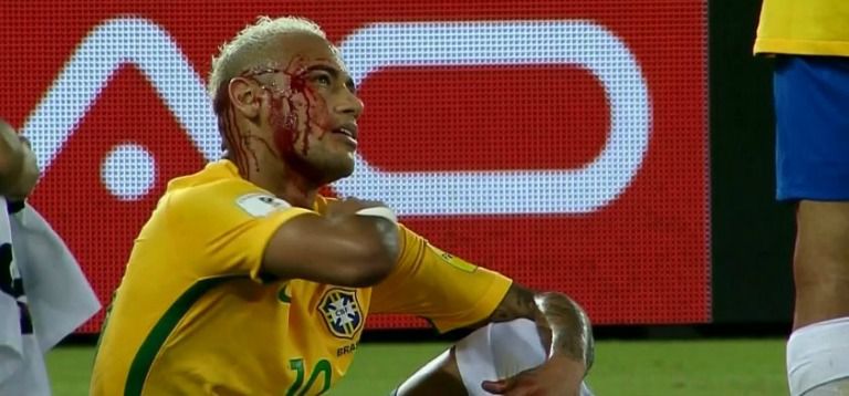 Tras recibir este golpe, Neymar comenzó a sangrar inmediatamente; sin embargo, el brasileño pudo salir por su propio pie para ser atendido en a las afueras de terreno de juego.