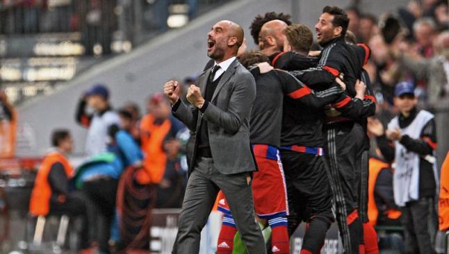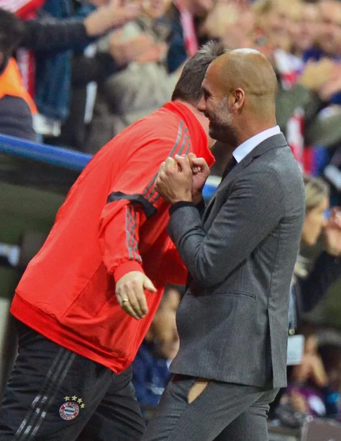 La alegría de Pep Guardiola por la actuación del Bayern Munich lo llevó a romper su pantalón.