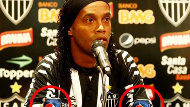 La decisión de Coca-Cola se produjo un mes después de la presentación de Ronaldinho como jugador del Mineiro, que tuvo lugar en una rueda de prensa en la que había dos latas de Pepsi en el centro de la mesa.