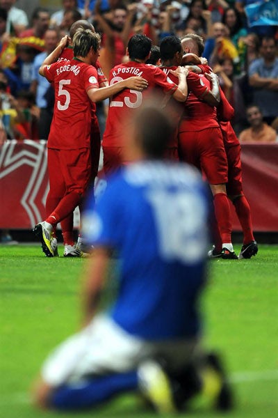 Portugal acribilló a la exrepública Soviética. Veintiún remates contra dos en los primeros 45 minutos. Dos largueros, un poste y media docena de buenas intervenciones del guardameta Kamran Agayev impidieron el gol antes del descanso.