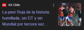 Pese a que La Roja ya se había quedado fuera de la Copa del Mundo en sus últimas dos ediciones (Rusia 2018 y Qatar 2022), ‘Diario As Chile’ cataloga a esta selección como 'La peor de todos los tiempos', pues la FIFA aumentó los cupos y no les alcanzó ni siquiera para pelear por el repechaje.