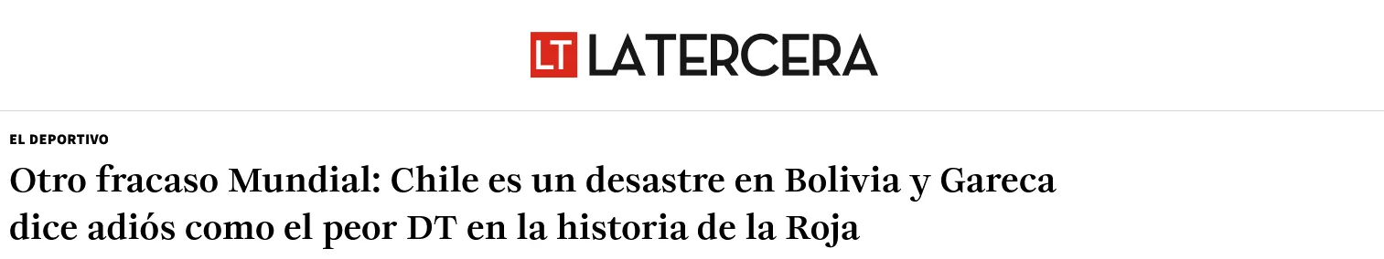 La eliminación de Chile de la Copa del Mundo 2026 fue noticia alrededor de todo el orbe. En cuestión de una década, Chile pasó a ser bicampeón de la Copa América a perderse tres justas mundialistas al hilo, es por eso que medios del país sudamericano como ‘La Tercera’ titularon este nuevo tropiezo como ‘Otro fracaso Mundial’, pues por segunda vez en su historia, Chile se pierde tres Mundiales de manera consecutiva.