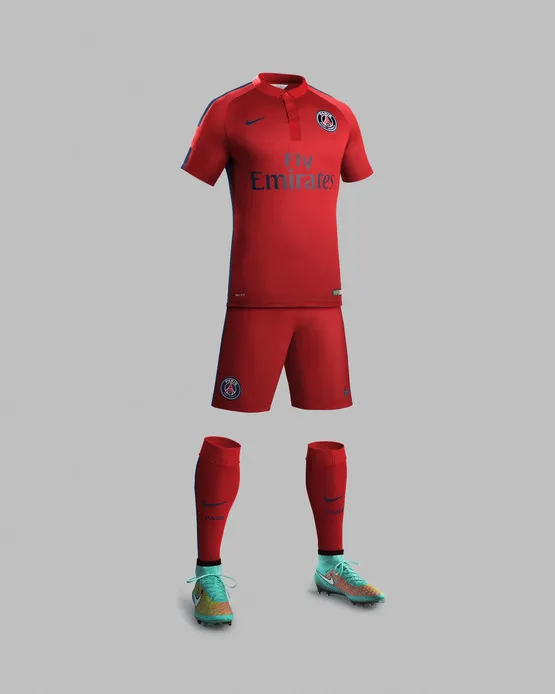 Este conjunto completa a la primera equipación, que es de color azul, y a la segunda, de color blanco, para formar la bandera de Francia y tener todos los colores del club parisino.