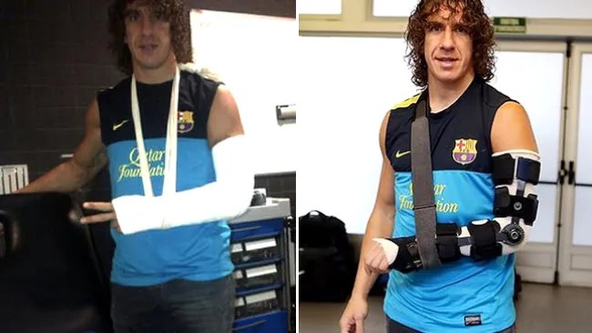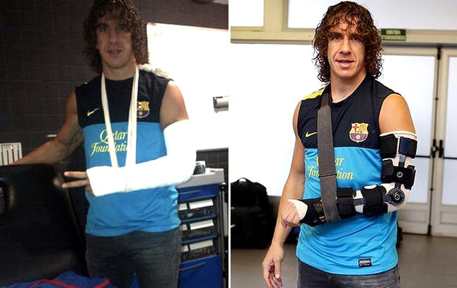 Puyol ya porta una férula articulada en el brazo izquierdo que le permitirá realizar movimientos de flexión y extensión.