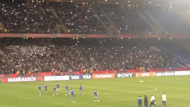 Aficionados, en su mayoría del cuadro español, llenaron las gradas del Stade Le Grand, aunque los seguidores cementeros pusieron muy buena cara, con cánticos y sus playeras por todo Marruecos.