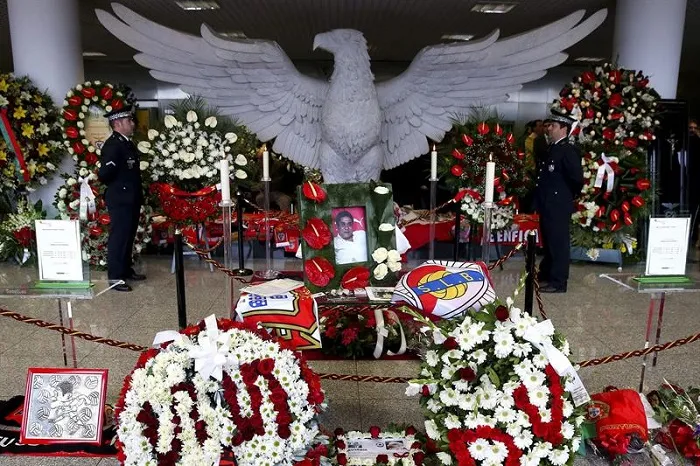 En la ceremonia estuvieron presentes la plantilla del primer equipo del Benfica, familiares y los directivos del club, en el que Eusébio ganó once Ligas lusas, cinco Copas de Portugal y una Copa de Europa (1961/1962).