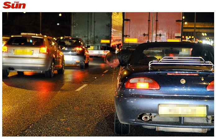 El diario inglés ';The Sun'; publica en exclusiva una imagen de Paul Gascoigne vomitando por la ventana de su auto, prueba de la recaída que sufre el ex jugador, quien tiene problemas de alcoholismo, los cuales admitió en una audiencia, tras ser detenido por conducir de forma peligrosa en Newcastle el 8 de octubre.