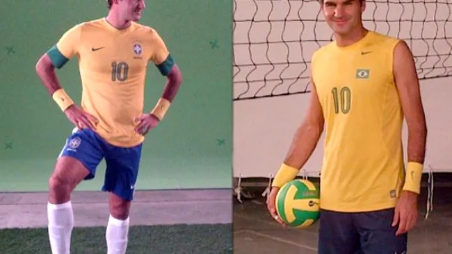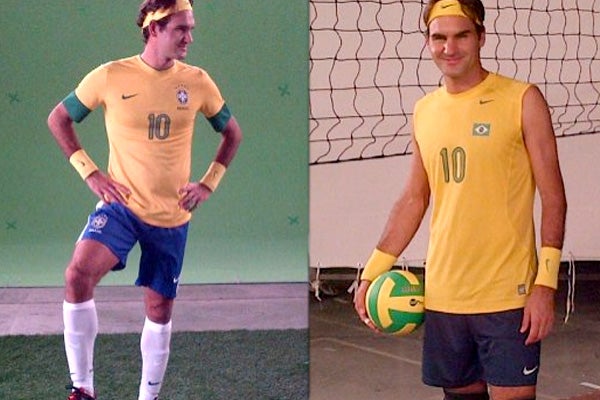 Federer compartió las imágenes a su cuenta de Facebook y en su atuendo de futbolista y de jugador de voleibol, comenzó su participación con una reconocida firma de máquinas de afeitar.