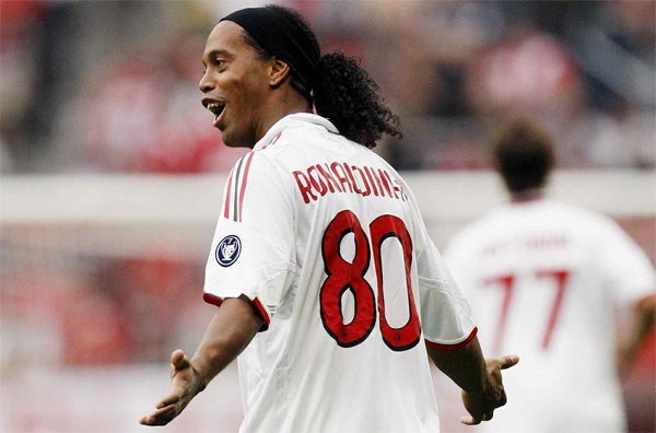Ronaldinho llegó al Milan procedente de Barcelona en julio del 2008 y firmó contrato por tres años.