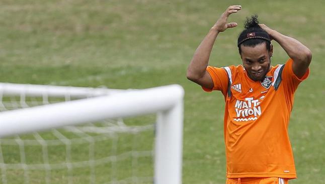 Ronaldinho fue ovacionado en su primer entrenamiento con el Fluminense por los cerca de 150 hinchas que acudieron a la sede del club carioca para ver al flamante refuerzo.