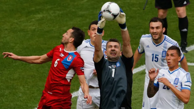 Chalkias de 38 años de edad apenas acumuló 32 convocatorias y aunque no fue titular fijo tuvo la oportunidad de defender el arco en los dos primeros juegos de la Euro ante Polonia y República Checa.