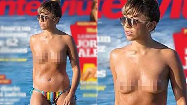 La joven de 20 años, estudiante de Administración y Finanzas, se ve en las fotos saliendo del mar sin la parte de arriba del bikini.