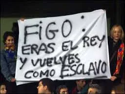 Luis Figo se había convertido en un ídolo en el Barcelona y un estandarte contra el Real Madrid; sin embargo, en el año 2000, el portugués llegó a las filas de la 'casa blanca' convirtiéndose en el fichaje más caro hasta esa fecha, al tiempo que el traspaso fue muy polémico y considerado por los aficionados culés como de alta traición.