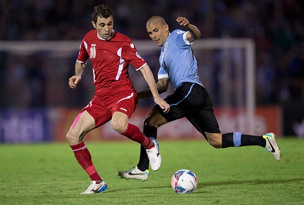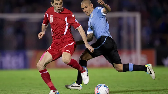 Uruguay confirmó su clasificación al Mundial de Brasil 2014 al empatar sin goles en Montevideo en un aburrido partido contra Jordania, un resultado que, sin embargo, le bastó a los charrúas para reservar su pasaje tras la victoria por 0-5 lograda en la Ida de la Repesca en Omán.