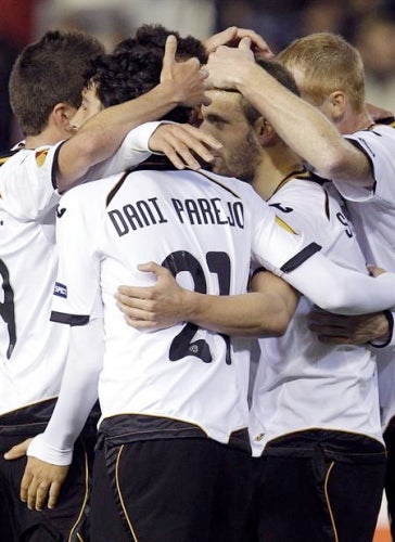 El Valencia derrotó al PSV Eindhoven de Holanda 4-2 en el estadio Mestalla, partido correspondiente a la Ida de los Octavos de Final de la Liga Europea.