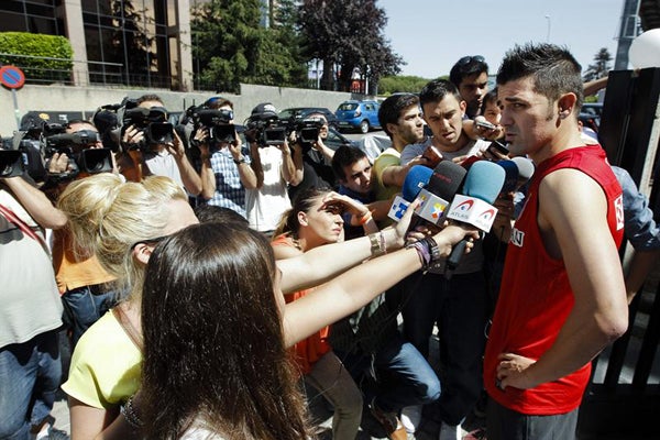 "El fichaje de Villa responde a todas las expectativas. Ha sido uno de los fichajes que mejor ha sentado a los aficionados en la historia del Atlético. Está todo el mundo encantado", declaró.