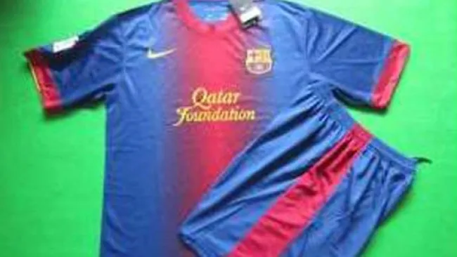 En las imágenes que ofrece eBay, supuestamente con las etiquetas oficiales de Nike, que es la firma que abastece de material deportivo al Barça, la camiseta aparece sin la bandera catalana en la parte trasera del cuello. Una fuente azulgrana afirmó que la nueva camiseta, azul con sólo una franja central de color grana, llevará insertada la ';senyera'; en el lugar habitual (en la parte trasera del cuello).