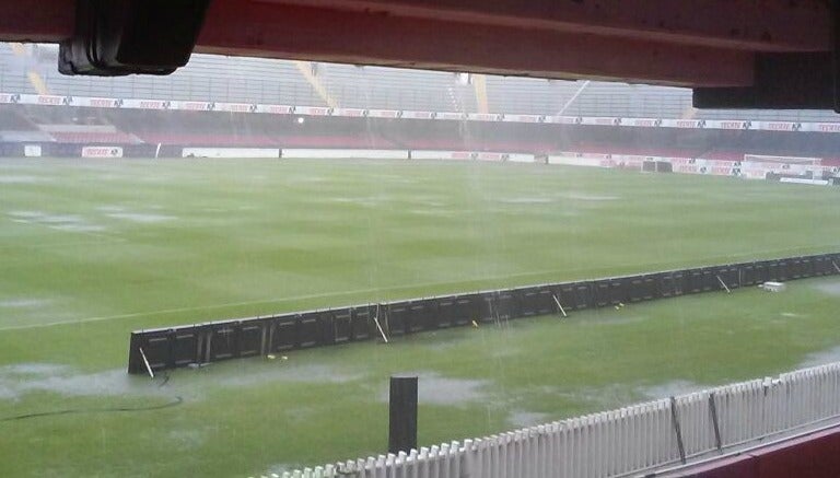 En imágenes emitidas a través de las redes sociales se puede percibir que el terreno de juego no se encuentra en condiciones para realizarse el duelo.