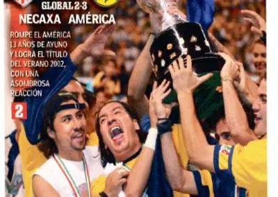 La Final del Verano 2002 se fue a tiempos extra con un Azteca, en su mayoría, apoyando a las Águilas. Al minuto 107, el 'Misionero' Castillo remató de cabeza en el área necaxista y logró el gol de oro válido en aquella entonces-, que le dio el campeonato a los de Coapa.