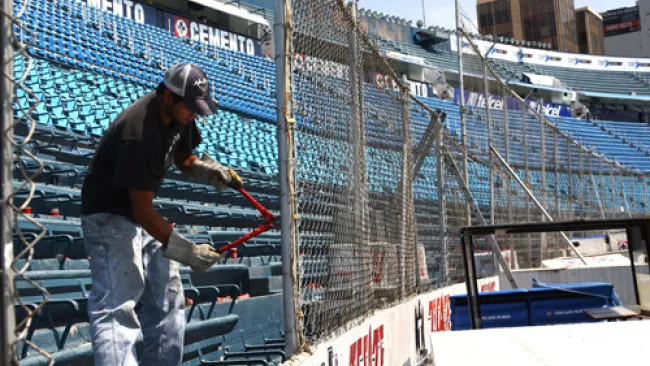 Trabajadores del Estadio Azul retiraron el enrejado de este inmueble como parte de una primera etapa para que al inicio de la temporada siguiente todo el coso esté sin mallas, tal como lo sugirió la Federación Mexicana de Futbol a los clubes de la Primera División.