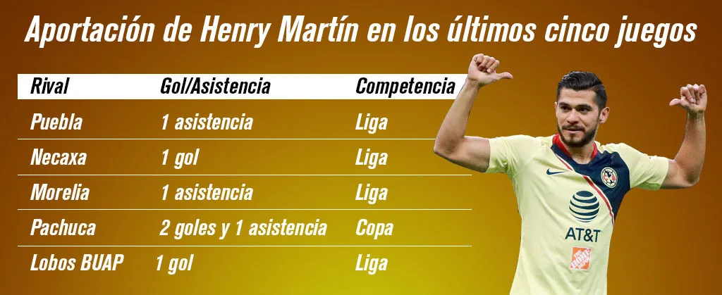 Ya es una costumbre que Henry Martín sea el jugador que marca diferencia en el ataque de las Águilas sin importar a quien tenga como competencia interna.