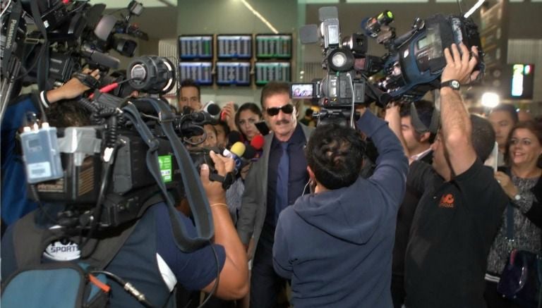 A su llegada al Aeropuerto Internacional de la Ciudad de México, Ricardo Antonio La Volpe se mostró hermético ante los cuestionamientos de la prensa tras su inminente llegada al banquillo azulcrema.