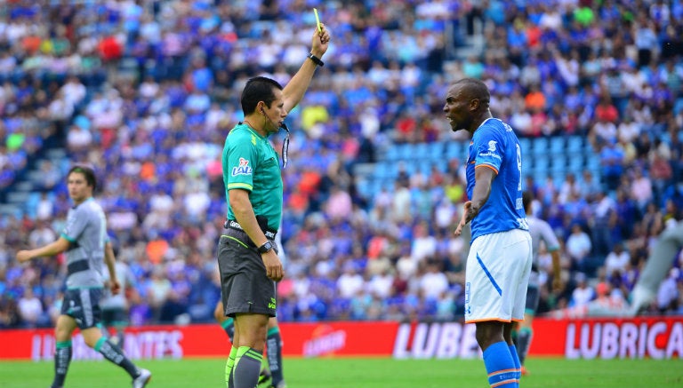 El delantero de La Máquina vio su primer cartoncillo amarillo al minuto 36, luego de una falta y, al 92', cuando el silbante marcó un penalti inexistente y luego rectificó, amonestó dos veces más al ecuatoriano, una por la mano que realizó al rematar a puerta y una más por empujarlo, por lo que fue hasta la tercera tarjeta amarilla que expulsó al atacante cementero.