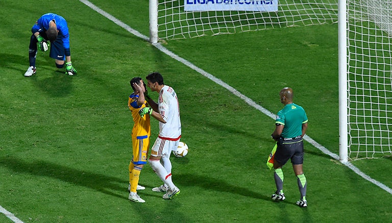 Jiménez se plantó desde los 11 pasos y remató con suma templanza para vencer al guardameta de los Pumas, lo que provocó que Nahuel prácticamente besara a su compañero.
