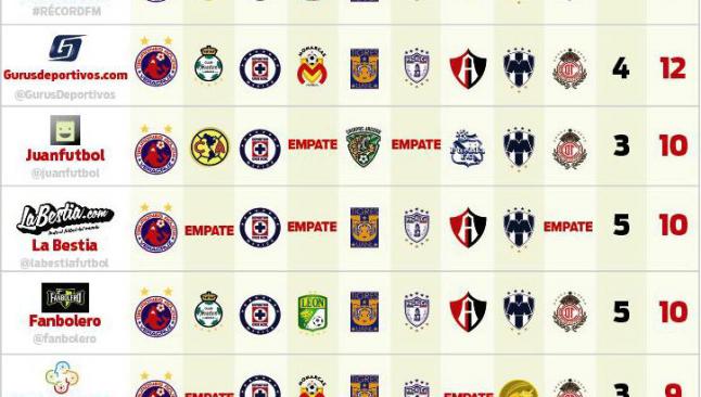 Veracruz fue la única escuadra que es favorita por decisión unánime para imponerse a Gallos; por su parte hubo decisión dividida en el duelo entre Santos y América. Otros que se llevaron la mayoría de los votos para conseguir los tres puntos fueron Cruz Azul y Monterrey.
