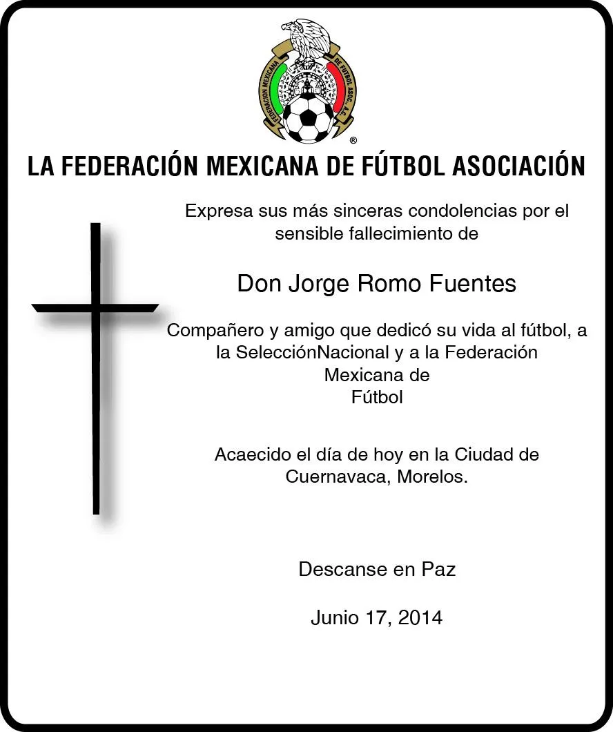 La Federación confirmó el fallecimiento del jugador, de quien dijo, dedicó toda su vida al futbol, pero no se refirió a las causas de su deceso.