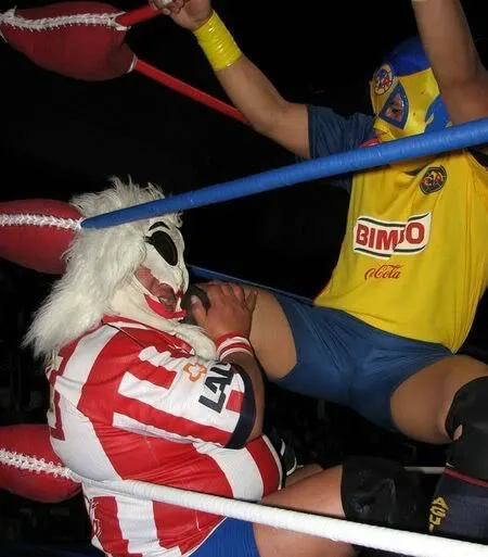 Por muy extraño que parezca, el duelo entre Chivas y América también se ha dado en el cuadrilátero, en años pasados han existido luchadores, como las Chivas 1 y 2, y las Águilas del América 1 y 2, que representaron a los equipos de futbol en batallas encarnizadas en las que sólo importaba poner en alto el nombre de rojiblancos o azulcremas.