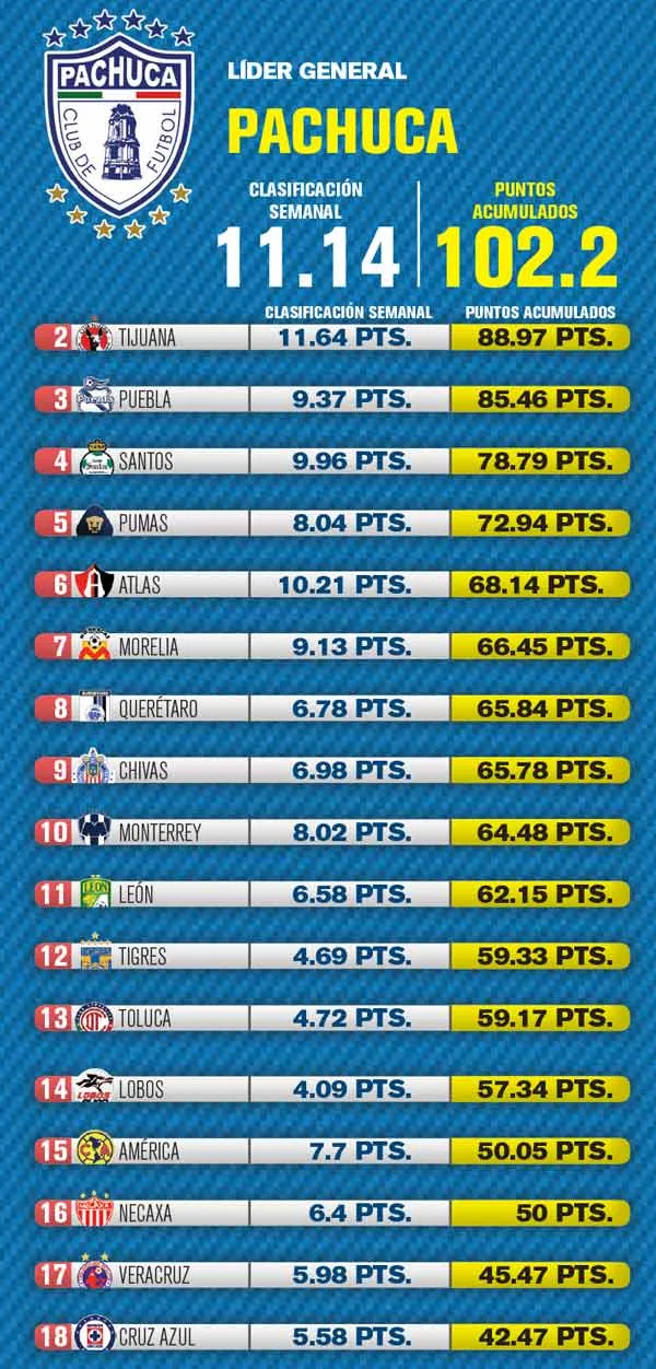 TAMBIÉN TE PUEDE INTERESAR: PACHUCA SE MANTIENE EN LO MÁS ALTO DEL RANKING RÉCORD