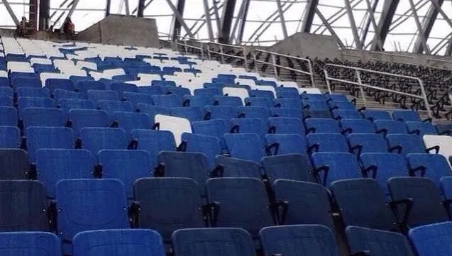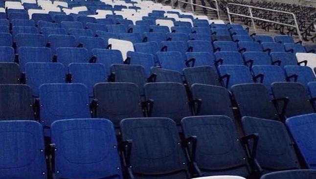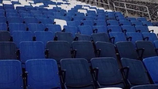 Los asientos, que no lucen colocados al 100 por ciento, son de color azul y blanco, esto según imagen de la página de Facebook Soy rayado y tengo aguante'.
