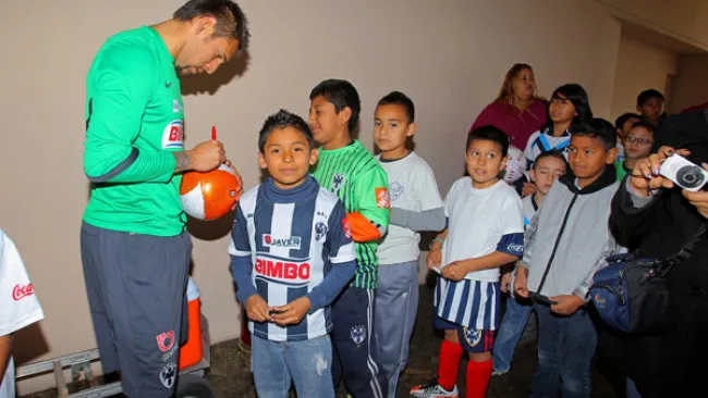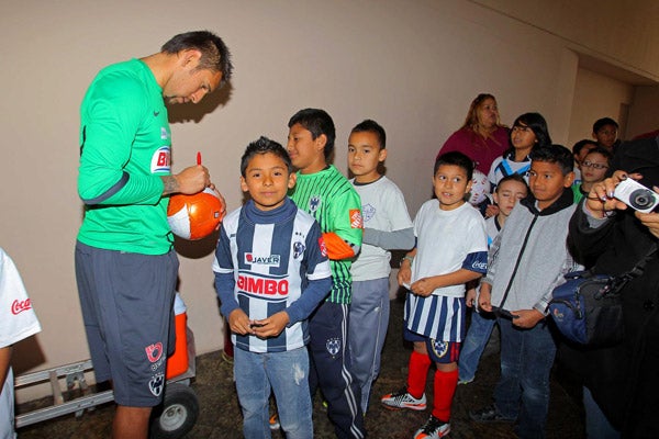 Unos 20 niños y jóvenes del Centro de Formación de los Rayados en Tijuana apoyaron este domingo el entrenamiento de los jugadores del Monterrey.