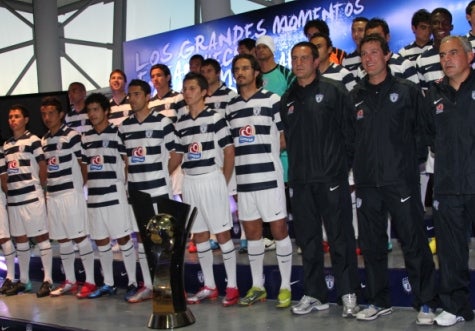 Con sus propios jugadores como modelos, el club Pachuca presentó el nuevo uniforme que utilizará en su tercera actuación en el Mundial de Clubes de Emiratos Arabes Unidos, del 8 al 18 de diciembre próximos.