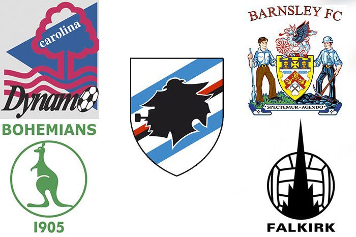 La lista de logotipos la completan el Sampdoria de Italia, representado por un 'viejo lobo de mar', la clásica insignia del Carolina Dynamo, de República Checa, el representativo canguro del Bohemian 1905, el diseño simplista la torre Blackpool del Falkirk y el colorido escudo del Barnsley FC ingleses.