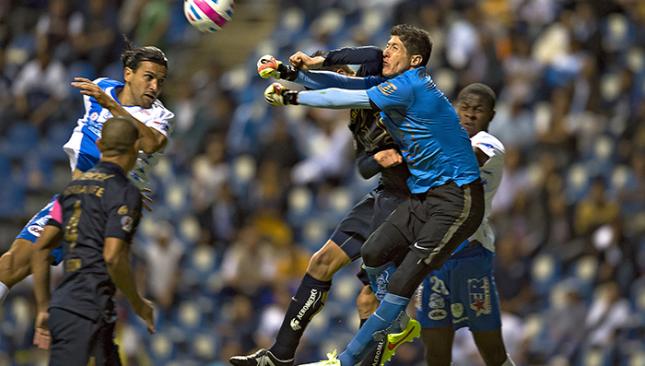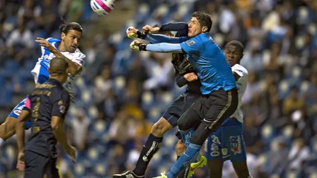 El zaguero de los Pumas de la UNAM, Marco Antonio Palacios, propinó un fuerte codazo a su hermano y guardameta del mismo equipo, Alejandro Palacios, en el cotejo de los universitarios contra Puebla.