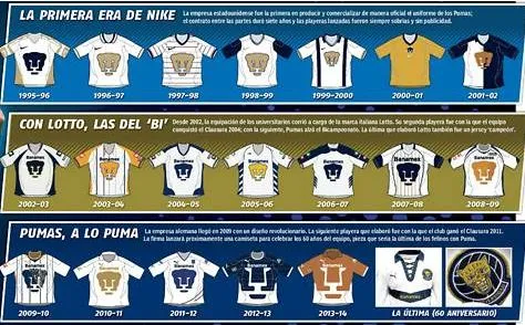 El cuadro del Pedregal ya había usado prendas de la reconocida marca estadounidense, cuando en la década de los años noventa (1995-2002) Nike elaboró las indumentarias felinas.