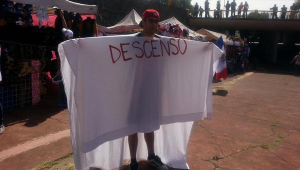 Únicamente fue necesaria una sábana con la leyenda 'Descenso', para burlarse de las Chivas, que esta campaña inician en la parte baja de la tabla porcentual.
