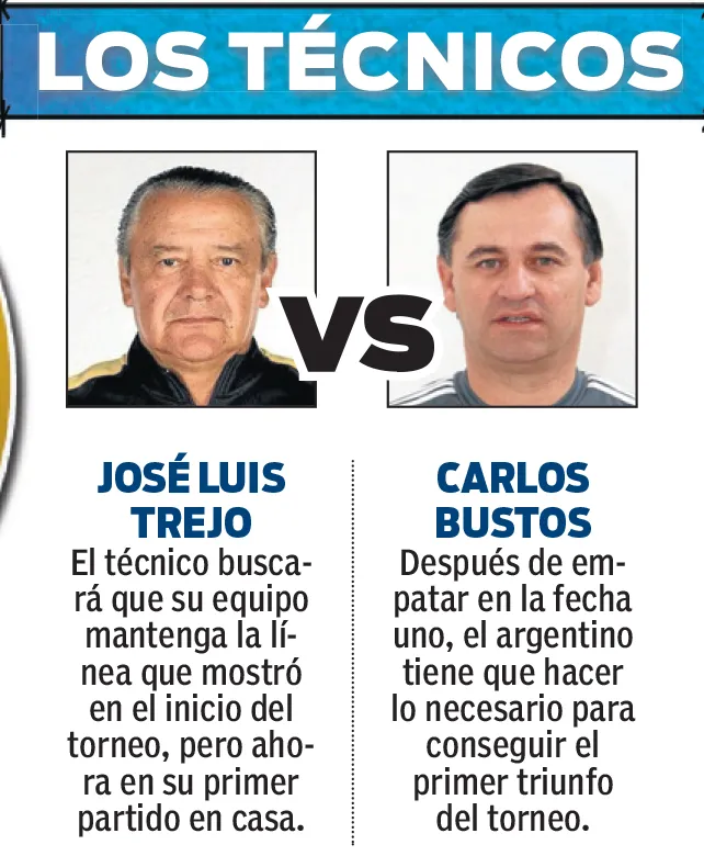 En el duelo de estrategas, José Luis Trejo buscará que su equipo mantenga el paso en la segunda jornada del torneo, por su parte, Carlos Bustos no puede dejar ir más puntos en el torneo con todos los problemas que tiene su equipo en la zona de descenso.