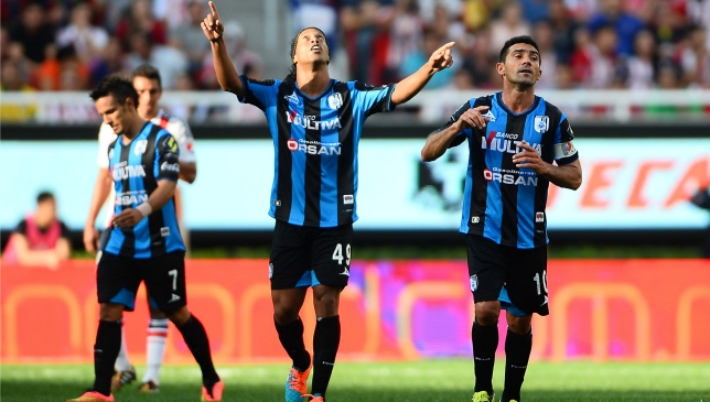 Ronaldinho anotó su primer gol en la Liga MX con Gallos Blancos en la victoria por 4-1 sobre Guadalajara.