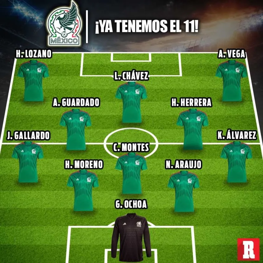 Arriba, Hirving Lozano y Alexis Vega formarán una dupla veloz que comprometa la estabilidad defensiva de la albiceleste, con lo que Henry Martín, Rogelio Funes Mori y Raul Jiménez deberán esperar en el banquillo.